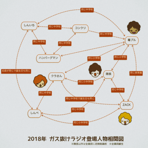 2018年ガス抜けラジオに話題中に登場する主な人物の相関図だっ!